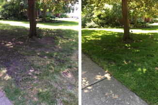 Use Biochar To Minimize Salt Damage Over The Winter The use of a low ash biochar can aid in the prevention of salt damage caused over Winter months during the application of de-icing agents to roadways and sidewalks. These de-icing agents can accumulate in the adjacent soil and have a negative impact of the plant’s growth during the Spring warmup. Wakefield Biochar has a high surface area that will bind the de-icing salts.(1,2) The high surface area of the biochar generates a large distribution of micro or mesopores. The greater the number of micropores, the greater the surface area of the biochar and the more surface sites upon which salts can adsorb.(2) Biochar amended soils have commonly been shown to increase plant growth and alleviate plant stress due to drought and the negative impact of toxic metals in the soil. The University of Toronto showed that biochar can alleviate the stress on plants caused by road salt. This study showed that the plants in biochar-amended soil grew at similar rates to plants that were not impacted by road salt.(3) Application of biochar can be done in multiple ways. For example, when dealing with turf, the biochar can spread over the surface of the turf (top dressing). Wakefield Biochar recommends 1-cubic foot of biochar for every 375 to 400 sq feet of grass. It is always a good idea to mix the biochar with compost or a fertilizer. The compost could be a 50/50 blend and the fertilizer should be blended at the manufacturer’s recommended rate for their product. Biochar Application Process For Salt Damage A possible application process could be: Core aerate the area prior to application of the biochar Blend biochar with compost at a 50/50 (v/v). Ideally, allow to charge for at least a few days Top dress the biochar/compost blend at a rate for 1 cubic foot of biochar per 375 to 400 square feet Rake in areas that have heavy spots of biochar Water after application If possible, tilling the biochar into the soil will help get the benefits of the biochar deeper into the root zone. Wakefield Biochar recommends that the biochar is mixed at a 10% (by volume) 4 to 6 inches deep into the soil. As with top dressing, it is helpful to mix the biochar with a compost or fertilizer prior to tilling it into the soil. Don’t worry if you can’t apply the biochar in the Fall. Biochar is stable and will not decompose for hundreds to thousands of years. You can apply biochar any time of the year and the positive effects will be seen in the Spring! In Figure 1, the soil adjacent to this driveway was in poor health with years of neglect. This impact of biochar was noticeable after a few weeks. Figure 1 Biochar: A Home Gardener’s Primer, Washington State University Extension Fact Sheet – FS147E, 2014 Sizmur, T., et al. Biochar modification to enhance sorption of inorganics from water. Bioresour. Technol. (2017), http://dx.doi.org/10.1016/j.biortech.2017.07.082 Biochar mitigates negative effects of salt additions on two herbaceous plant species. Sean C. Thomas, Susan Frye, Nigel Gale, Matthew Garmon, Rebecca Launchbury, Natasha Machado, Sarah Melamed, Jessica Murray, Alexandre Petroff, Caroyln Winsborough, University of Toronto, May 23, 2013, Journal of Environmental Management